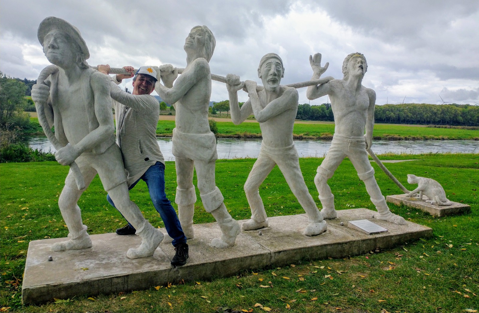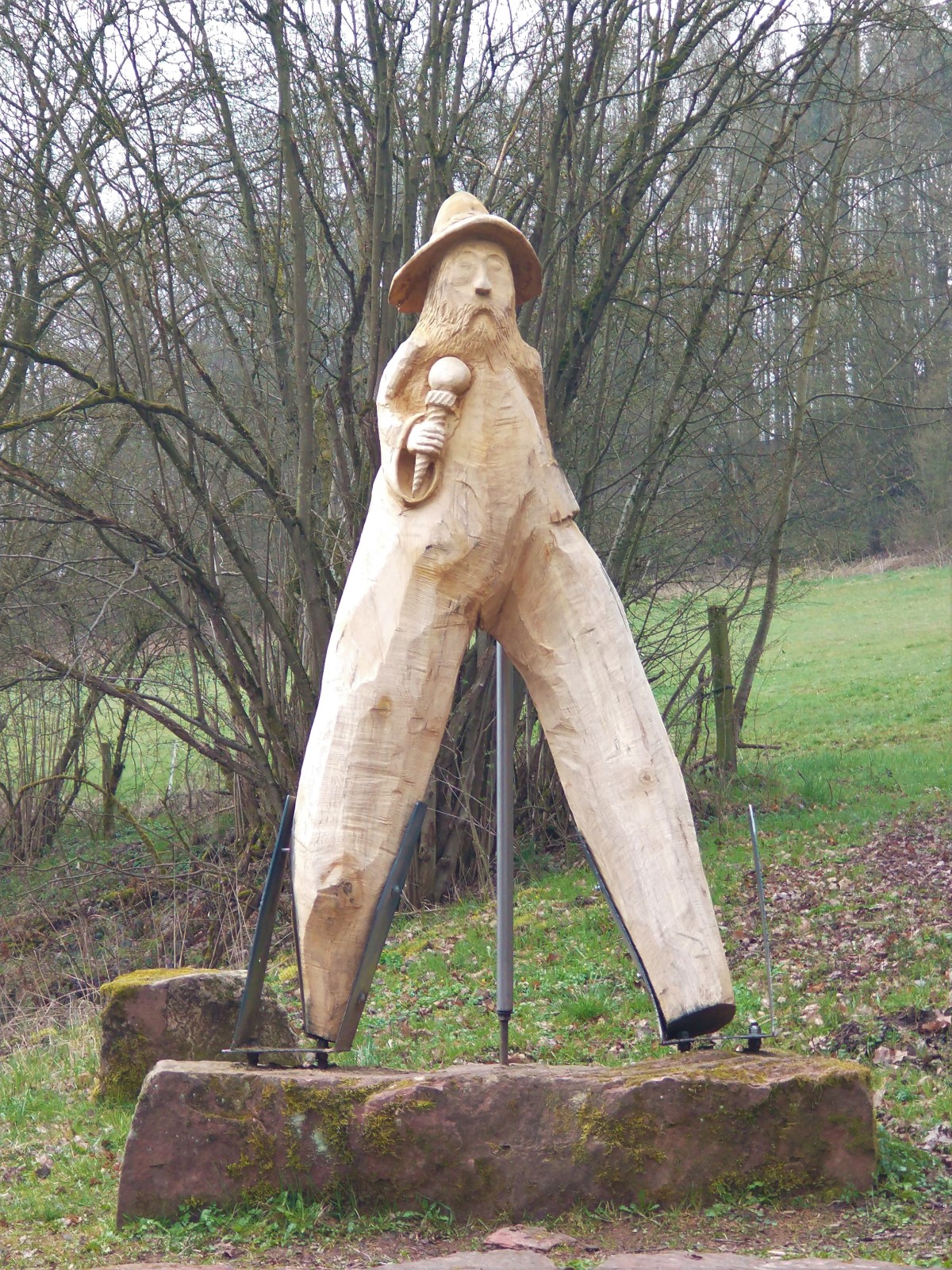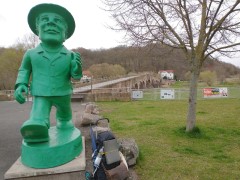 Die Werrabrücke in Vacha ist das Endziel des ökumenischen Pilgerweges von Görlitz nach Vacha auf dem Via Regia, Der grüne Mann ein "Ost-West-Grenzgänger".Party-Allrounder oder Pilger? 😉