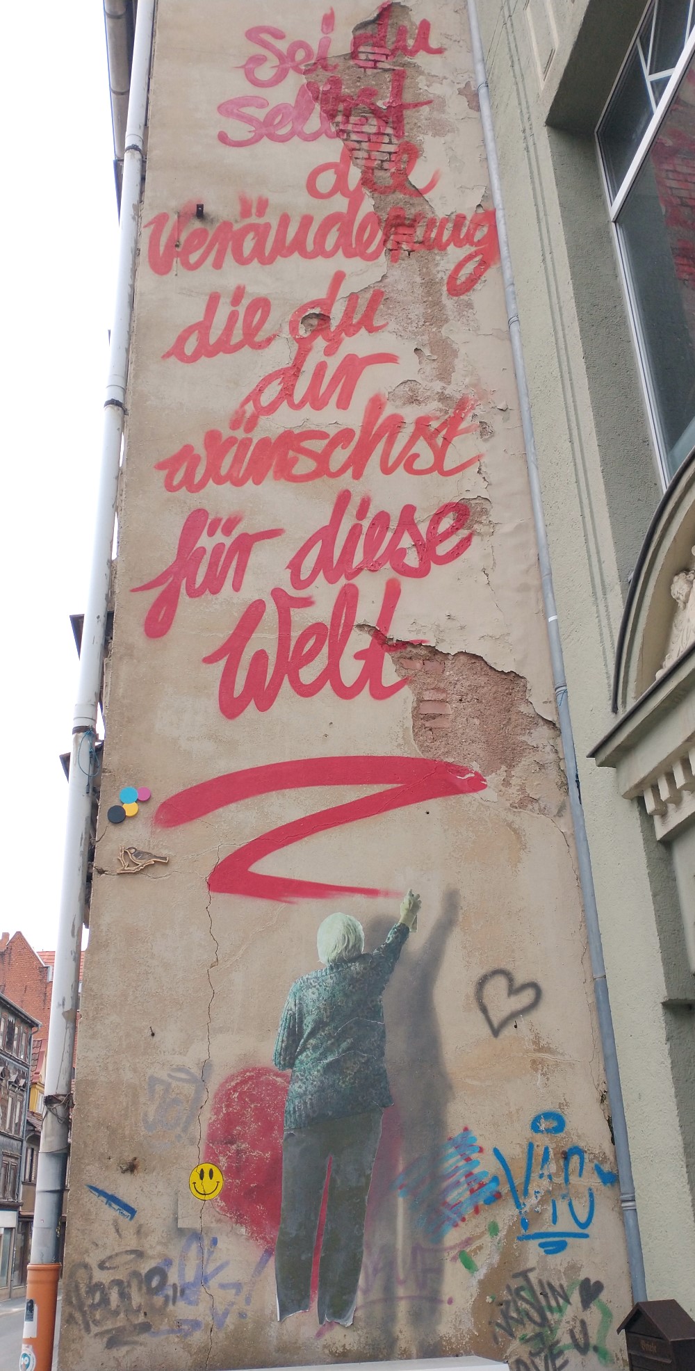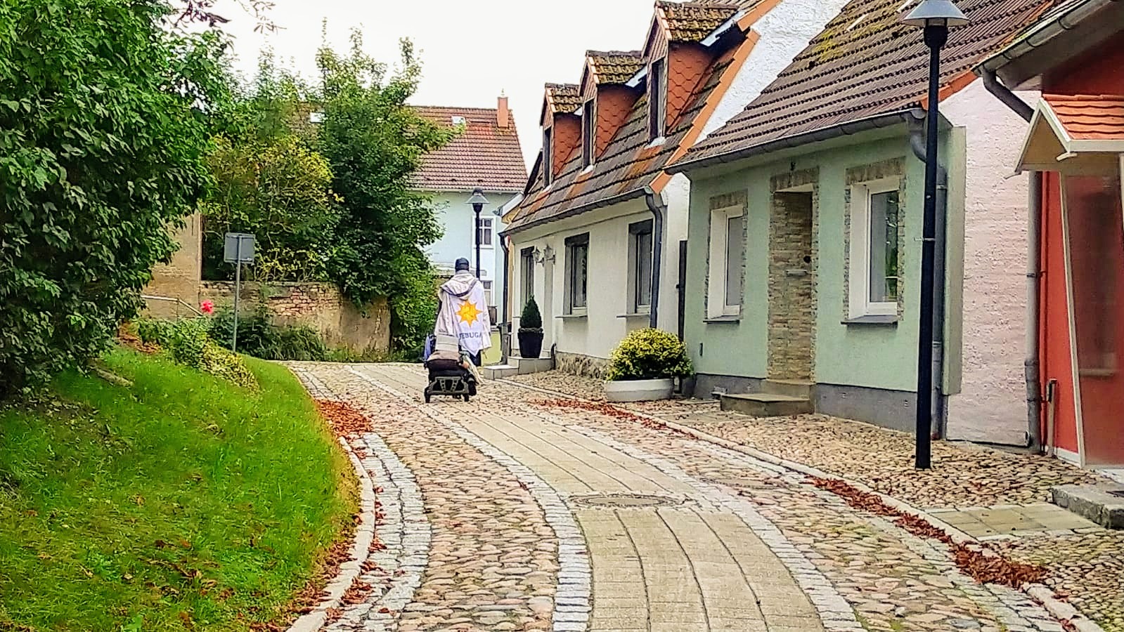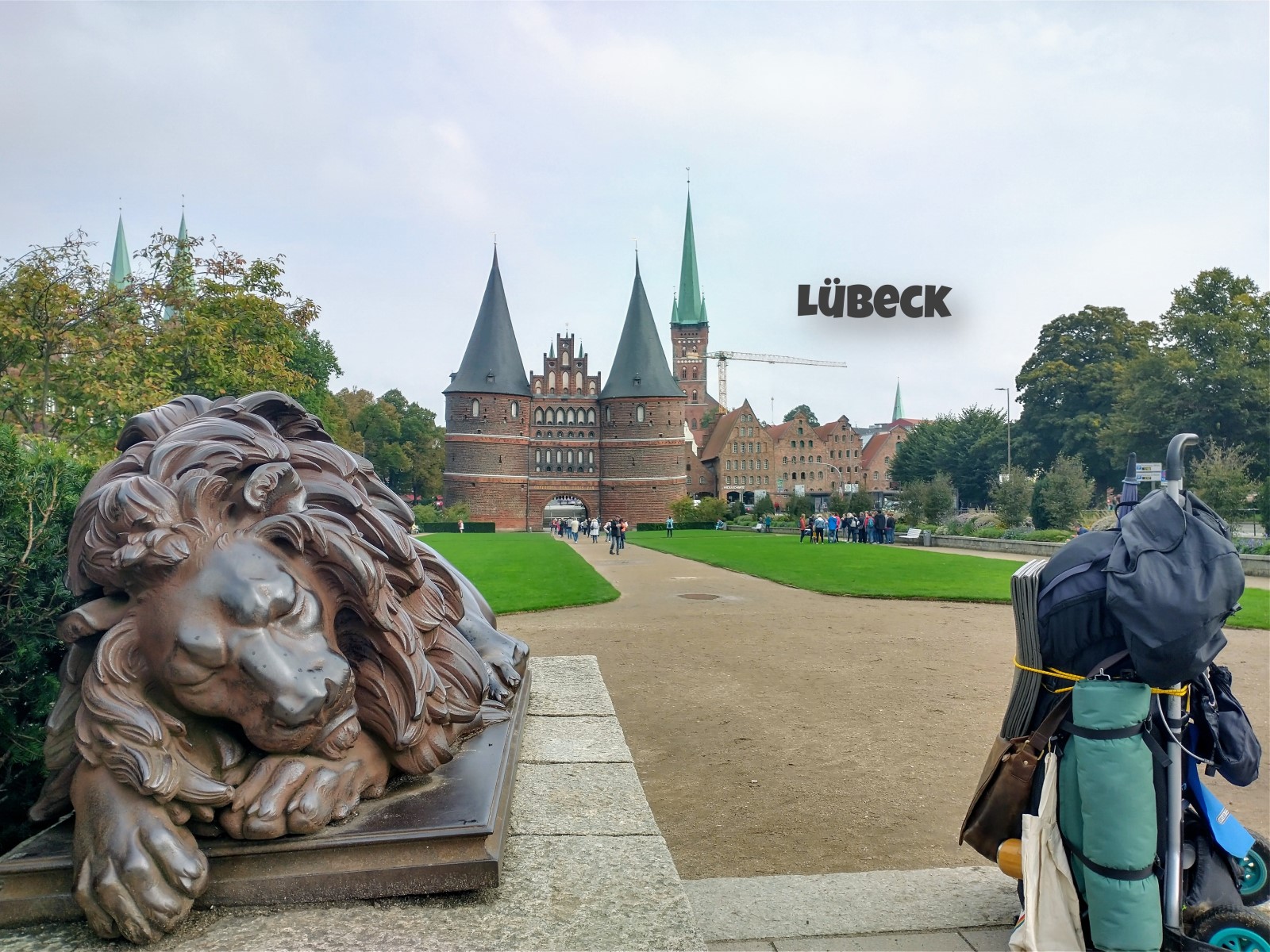 Der Löwe schläft heut Nacht ... in Lübeck! 🙂Heidi habe ich zufällig in einem kleinen Örtchen zwischen Lübeck und Hamburg kennengelernt! Sie ist fast 80 Jahre alt und will mit dem Fahrrad (ohne E!) nach Berlin zum Bundestag fahren, um einen Brief verbunden mit einer Geschichte von Gudrun Pausewang abzugeben. Sie sagte: "Man muss doch etwas tun und die jungen Leute aufrütteln!" Ich fand Heidi so mutig und voller Lebensfreude. Als ich ihr sagte, dass Grudrun Pausewang mal unsere Vermieterin in Schlitz war, war sie ganz außer sich, wie klein die Welt doch ist. Drücken wir ihr die Daumen, dass sie ihre Reise und ihr Vorhaben schafft.