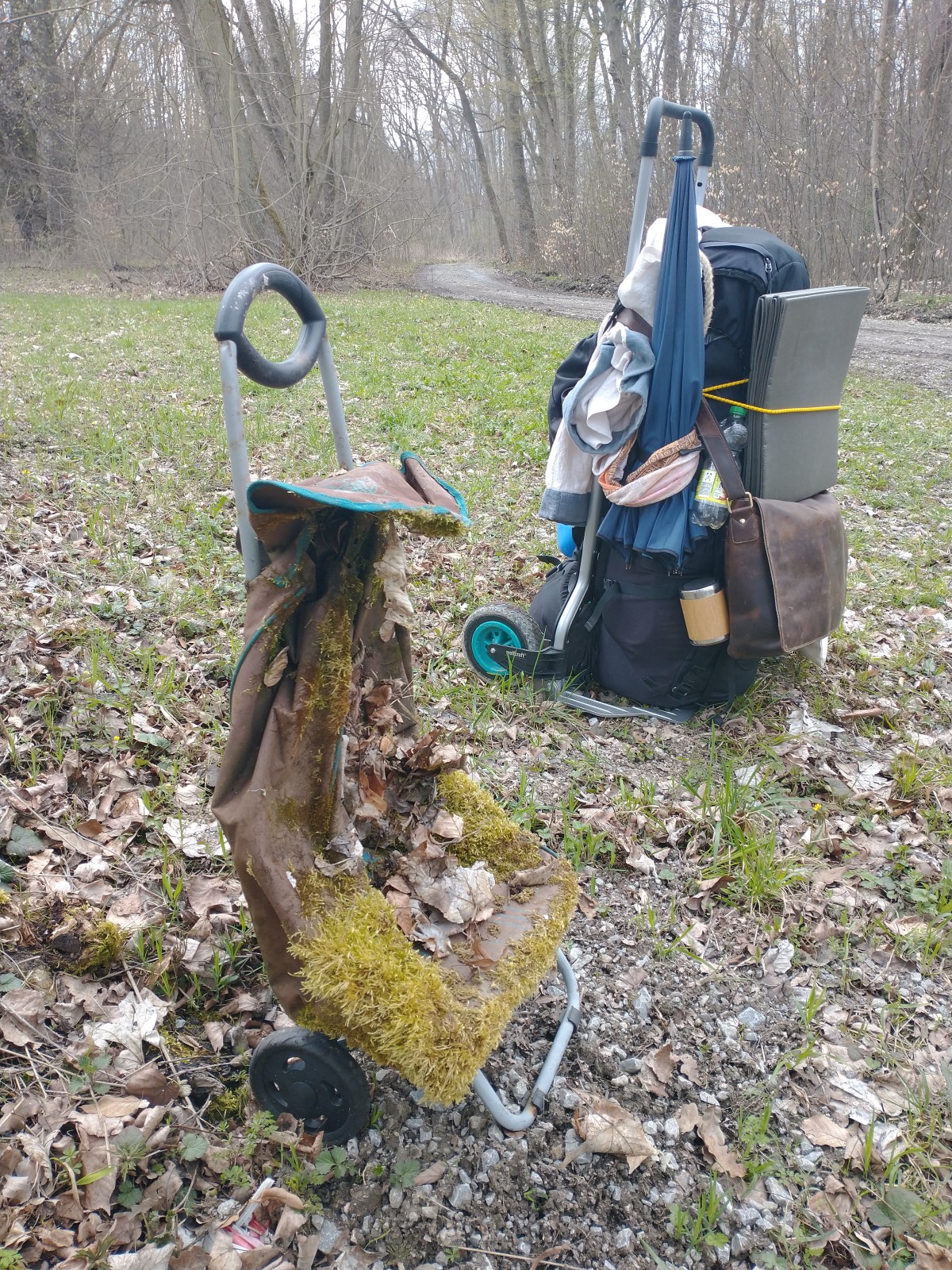 Muss ich mir da Gedanken machen!? 😉 - Dieser bemooste Trolley stand wirklich so wie auf dem Foto zu sehen tief im Wald auf einer kleinen Schonung.