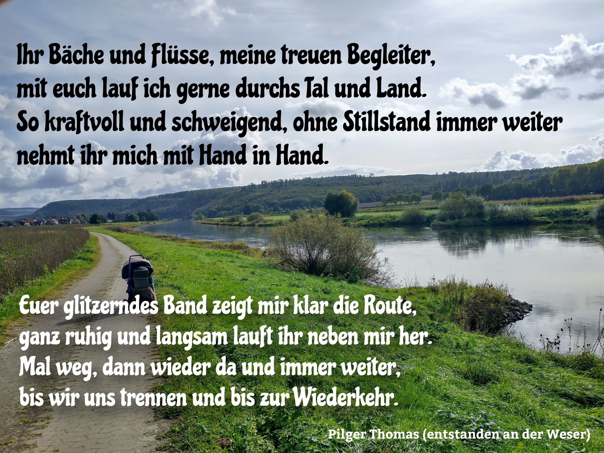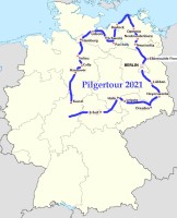 Fazit: Die Pilgertour 2021 war ebensfall noch sehr von Corona gezeichnet, aber da ich noch mit dem Schreiben meines Buches beschäftigt war, suchte ich sowieso die Ruhe und Zurückgezogenheit. Neu für mich als Pilger war, daß es auch in Deutschland schon gut erschlossene Pilgerwege gibt und ich den "Via Regia", einen mit Pilgerunterkünften sehr gut erschlossenen Weg durch Thüringen und Sachen laufen konnte, zwar in die verkehrte Richtung, aber das war mir nicht so wichtig. 😉 Im Frühjahr und Sommer besuchte ich auch Landgemeinschaften und arbeitete bei ihnen eine Weile mit. Natürlich war es schön, meine alte Geburtsstadt Hoyerswerda und Studentenstadt Dresden wieder zu sehen. 🙂 Die Pilgerreise 2021 hatte im Juli/August eine Sommerpause, in der ich mein Wägelchen in Hoyerswerda ließ und mit dem Zug nach Haus in meine Einrichtung fuhr, um dort eine Feriengruppenbetreuung zu übernehmen. Dafür bekam ich als zeitlichen Ausgleich den goldenen Oktober, der sich dann auch von der schönsten Seite zeigte. Bei Parchim besuchte ich das "Haus der Gastfreundschaft" (lese dazu das Interview im persönlichen Teil), in Hamburg ging es dann wieder zurück Richtung Süden und in Kassel beendete ich meine Tour. Die sozialen Medien sind für mich eine nützliche Plattform geworden, um immer mal Anzeigen zu schalten nach dem Motto "Pilger sucht Dach", "Urlaub gegen Hand" oder in Foren und Gruppen auf Angebote von trockenen Übernachtungen auf Kost&Logi zu reagieren. Ich kann wieder JEBUGA nur danken, das alles geklappt hat, keine Krankheiten und Gelenkschschmerzen, zu Hause gab es auch keine schweren Vorfälle, so daß ich meine Reise nicht unterbrechen musste und auch den Schlechtwetterphasen bin ich fast immer gut ausgewichen. 🙂 Natürlich hoffe ich besonders, daß ich Menschen inspirieren und zum Nachdenken anregen konnte, denn das ist verbunden mit meinem Buch und dem Internetauftritt meine eigentliche Motivation. Bis im April 2022 zur nächsten Pilgerreise! Pilger Thomas