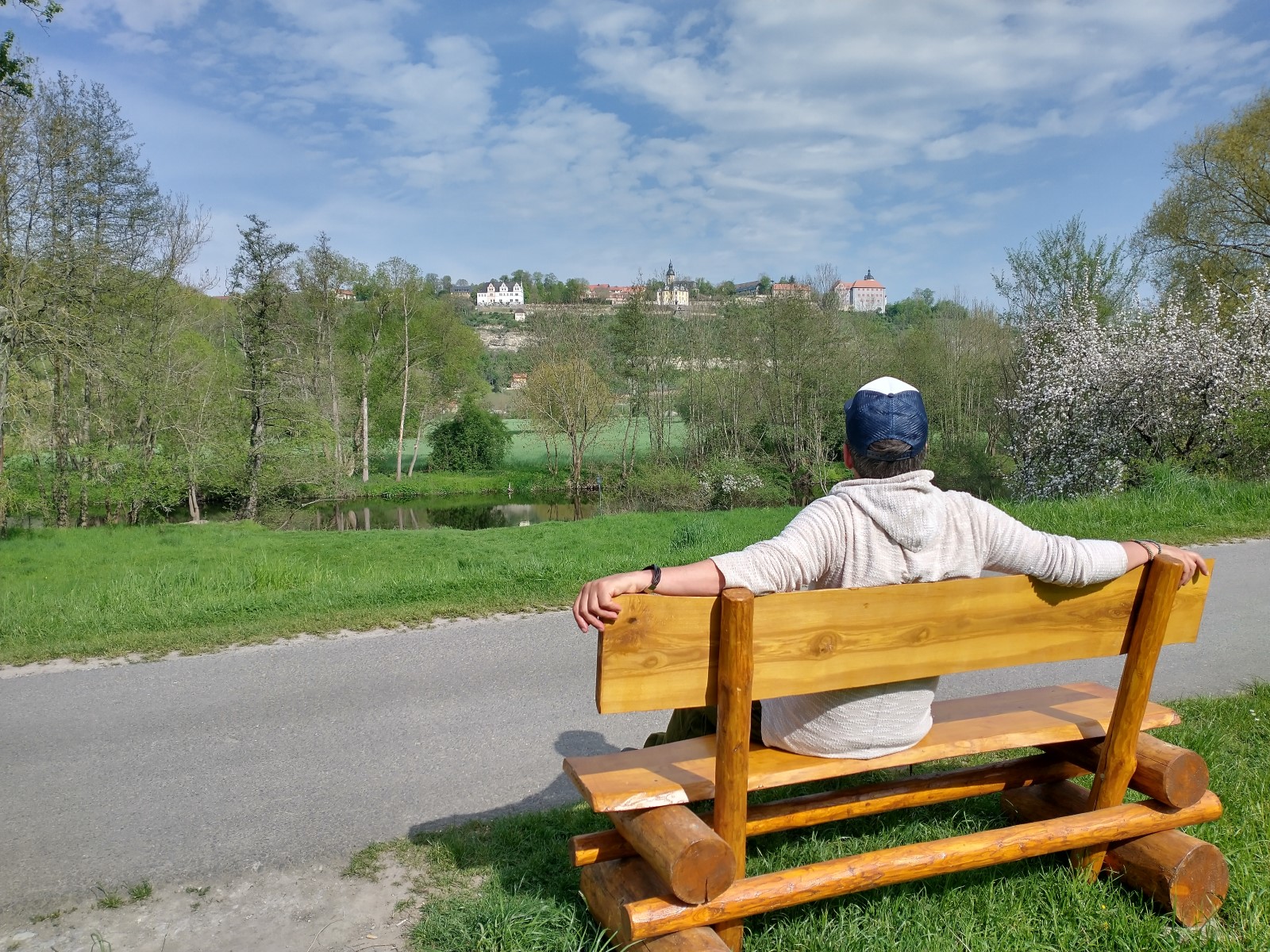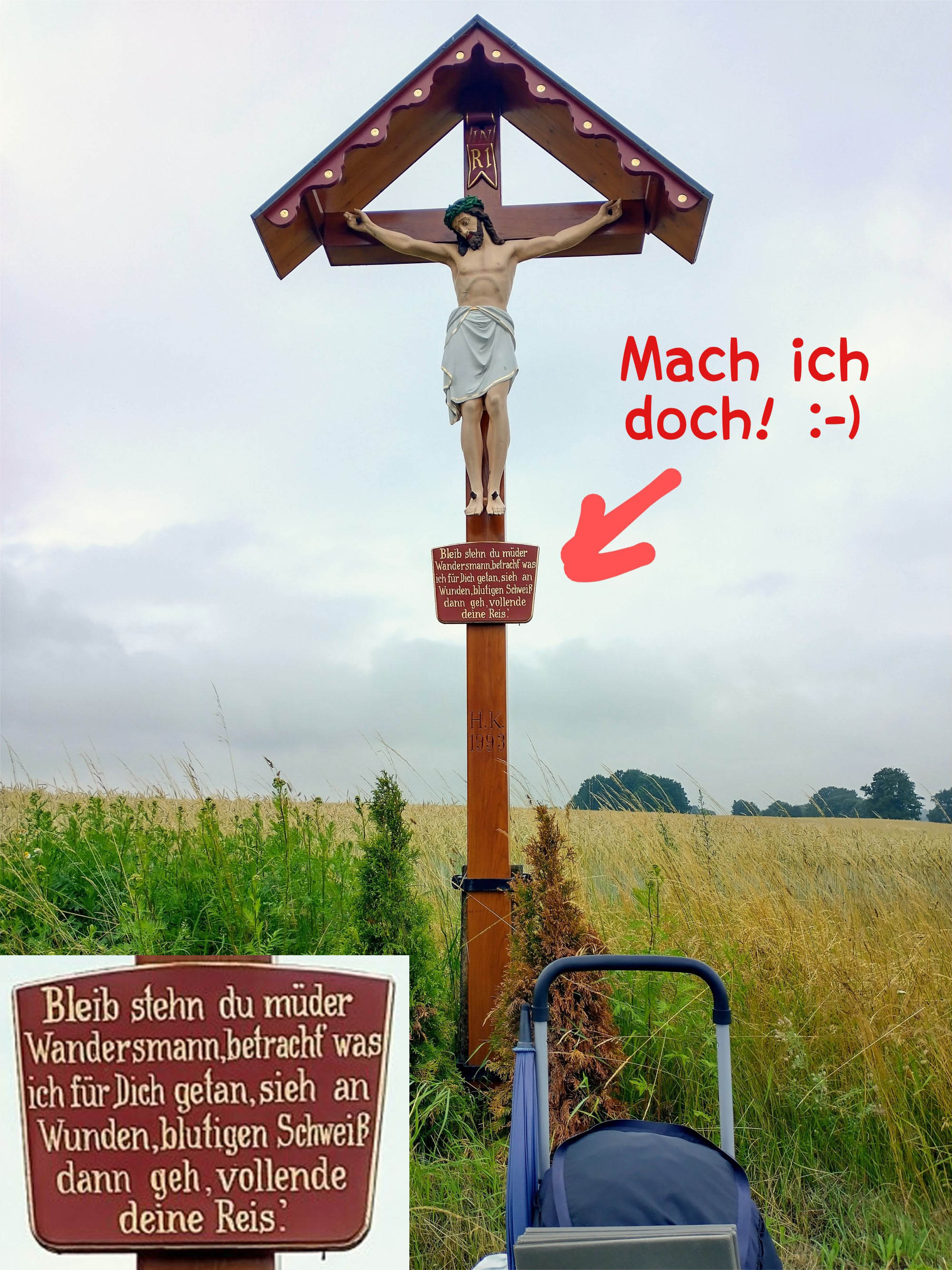 Ich möchte mit diesem Blogeintrag ganz liebe Grüße an Margit senden, die mir zwischen Meißen und Moritzburg ihr Gartenhäuschen als Pilgerunterkunft zur Verfügung stellte. Ich spürte gleich am Anfang ihre Freude, daß sie endlich mal einen Pilger aufnehmen konnte, ich war überhaupt ihr erster, da die Coronabeschränkungen es lange nicht möglich machten. Da ihr spirituelles Zuhause der Buddhismus ist, sie einige Male in Indien pilgerte und ein sehr bewegtes Leben hinter sich hat, war unser Abend und das Frühstück gefüllt mit sehr tiefgründigen und interessanten Gesprächen. Vielen Dank, liebe Margit, für diese schöne Begegnung und ich wünsche dir, daß du nun mehr Besuche bekommst! :-)