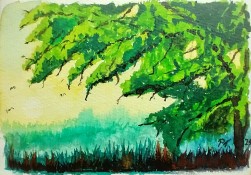 Lautlos die Trauerweide senkt ihre Blätter wie Lanzen hinab.