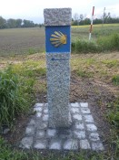 "Der Herbst steht auf der Leiter und malt die Blätter an. Ein lust'ger Waldarbeiter, ein froher Malersmann!" (die Ossis kennen bestimmt noch den alten DDR-Schlager.😉)Waschtag! Und wenn die Sachen frühmorgens bei Aufbruch noch feucht sind, werden sie halt während des Pilgerns luftgetrocknet.🙂