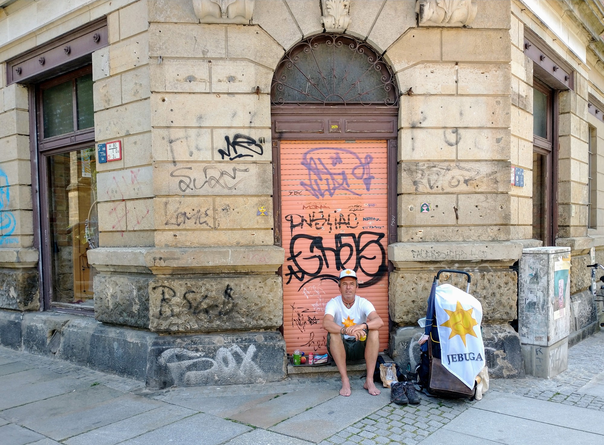 In Dresden wurde ich herzlichst von einem Griechen (links) per Couchsurfing eingeladen und waren zu dritt mit seinem Kumpel aus Syrien ein Bierchen trinken.