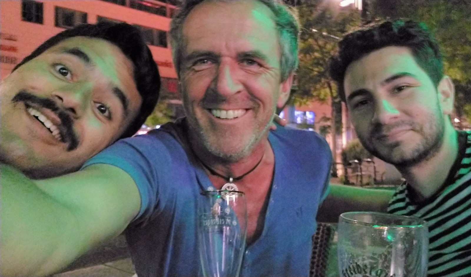 2.Foto: In Dresden wurde ich herzlichst von einem Griechen (links) per Couchsurfing eingeladen und waren zu dritt mit seinem Kumpel aus Syrien ein Bierchen trinken.