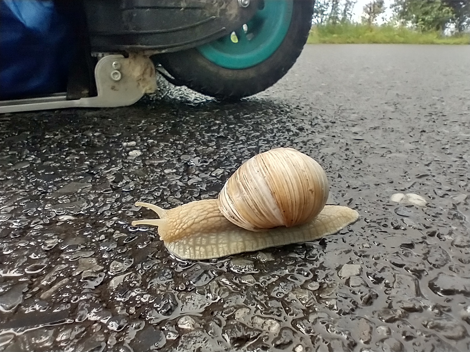 Manchmal komme ich mir auf einer Straße wie eine Schnecke vor! 🙂 Da stellt sich der dicke Kerl mir einfach in den Weg! Unerhört! 😉