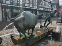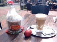 Der ukrainische Osterkuchen, den ich geschenkt bekommen habe, kurz bevor ich ihn mir einverleibte.Find ich ja mal einen originellen Brunnen! 🙂 Die Kuh hört nicht auf, Wasser zu lassen.