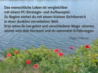 Es ist einfach so schön, das Leben in all seinen verschiedenen Facetten so intensiv zu durchleben: mal als König, dann wieder als Bettler, mal als dankbar Empfangender, dann wieder als bewusst Dienender, mal als Beobachter und dann wieder mitten drin. Und wichtig ist für mich, daß ich nicht überheblich werde, sondern dankbar bleibe!