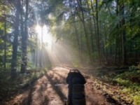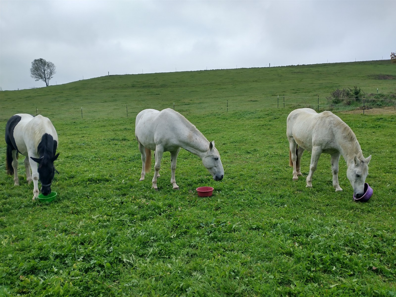 Bei einem Arbeitseinsatz in einem Seminarhaus ergab es sich durch einen Krankheitsfall, dass ich einige Tage drei Pferde außerhalb des Ortes versorgte, zu denen ich früh und abends mit Don, einem ohne Leine freilaufenden Hund, regelmäßig hinlief. Das genoss ich sehr, eine Weile mit Tieren so eng zu arbeiten.