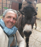 1.Foto: bei Erfurt arbeitete ich ein paar Tage auf einem Eselhof und ich half dem kleinen Tilo, die Esel von der Koppel zu holen: Film