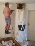 5.Foto: Seit dem Start machte ich auch wieder verschiedene Arbeitseinsätze bei Familien in Form von Work&Travel und UgH. Dazu gehörte das Abreißen eines Schornsteins im Haus (siehe Foto), Anlegen eines Spinatfeldes und einer Feuerstelle, Heckenschnitt, Werkstattentrümpelung, Parkplatzeinweiser, Kaffee&Kuchen-Stand-Betreuung, Hasenstallaufbau u.v.m.