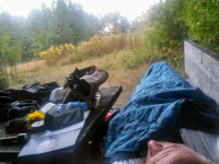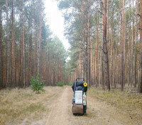 3.Foto: Wie ich schon im Bankgeheimnis ahnte, wurde ich in der großen Gemeinschaft ZEGG in Bad Belzig wiederum abgewiesen. Als ich durch das Gelände lief, sprachen mich zwei Gemeinschaftsmitglieder am Campus (großer runder Platz) neben einem offenen Unterstand an. Ich fragte, ob ich unter diesen nicht übernachten könnte, verlangte kein Essen, keine Toilette, nichts, als nur mich dahinzulegen mit meiner Isomatte und Schlafsack. Ich hörte jedoch nur den berühmten Satz "Es tut uns leid!". Es ist schon traurig, wenn sich eine Gemeinschaft, die sich "gesellschaftlichen Wandel, gelingende Beziehungen, Verbundenheit und Kooperation" auf die Fahne schreiben, nicht einfach auch mit spontaner und unkomplizierter Gastfreundschaft auf einen Friedenspilger reagiert und mir wenigstens eine überdachte Ecke anbietet. Als ich dann fragte, ob ich mir wenigstens noch etwas das Gelände anschauen darf, verwehrten sie mir auch das, weil dies ein Privatgrundstück (also kein Dorf wie jedes andere?) ist. Ich kann absolut verstehen, wenn eine große Gemeinschaft einen geregelten Gästebetrieb braucht und auch die eigene Privatsspäre schützen muss. Aber es ist eben genau die Gefahr in unserer heutigen Zeit, dass alles nur noch ein "Betrieb" wird mit Anmeldeformular, Kontaktperson, Gebühren, Kennenlernkursen und starren Regeln. Dabei gerät das spontane, menschliche, persönliche und gelebte immer weiter in den Hintergrund. Ich bin dann wieder losgezogen und hatte bei Bad Belzig eine geruhsame Nacht im Wald (siehe 4.Foto).