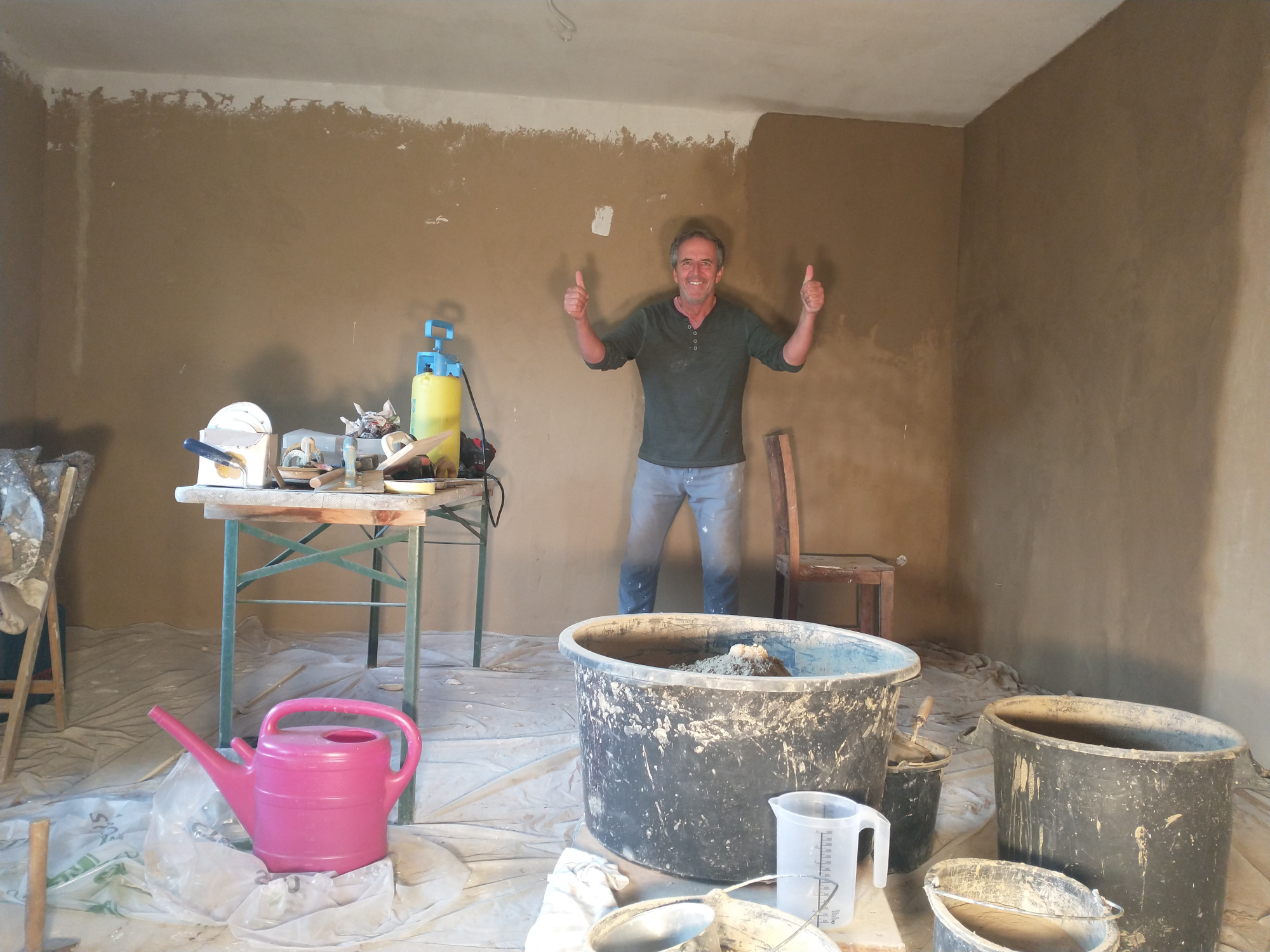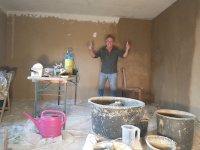 5.Foto: In einer tollen Gemeinschaft bei Limburg habe ich tagelang Wände mit Lehm verputzt. Wieder was dazugelernt!